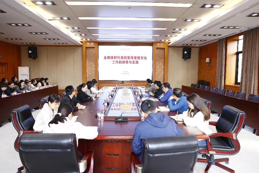 10月14日上午,党委常委、宣传部部长兼新闻中心主任、新闻发言人尹兆华在办公楼306会议室为机关各支部宣传委员宣传部教师共50余人讲授宣传思想文化工作专题党课,会议由机关党委书记蒋韬主持。